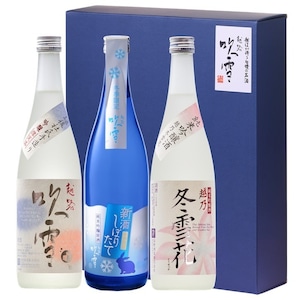 蔵で生まれたて一番の爽やかな香りと若々しく荒々しいしっかりとした味わいの新米新酒、純米吟醸酒の原酒と海外で人気のまろやかな純米吟醸酒、越乃冬雪花、ロングセラーを続ける当蔵代表銘柄、越路吹雪吟醸酒をセットにしました。