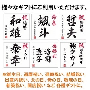 大切な方のお名前や、会社の社名を入れることができます。各種プレゼント、記念品、景品としてご利用いただけます。